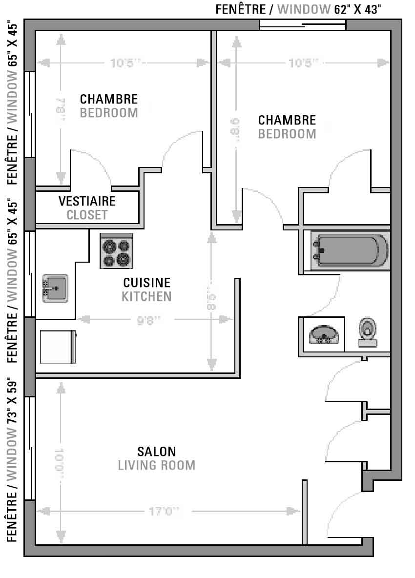 1 045 $ par mois non meublé