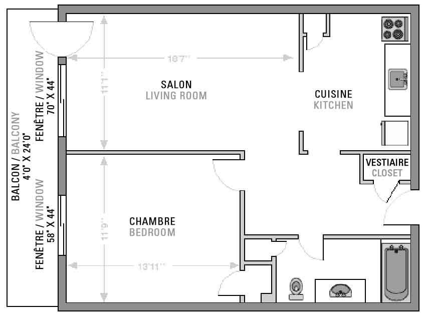 850 $ par mois non meublé